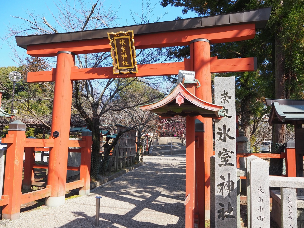 奈良駅から東大寺に向かう途中にあります。奈良時代に創建された神社で、氷の神を守ります。奈良時代には氷室で冬に作り、貯蔵した氷を春以降取り出し、使っていたそうです。現在は製氷機業者からの信仰が厚いそうです。