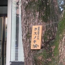 また後ろには、区民の誇りの木としてデカイ、クスノキが立っています。