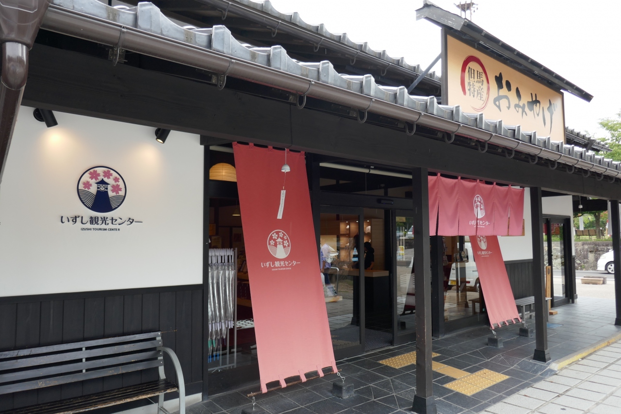いずし観光センターは、大きな駐車場のすぐ近くにあります。街のシンボルともいえる「辰鼓楼」にも近く、観光の拠点となる場所です。観光情報の入手や土産を買ったり、またトイレもあります。私たちもこの隣りの駐車場に車を停め観光をスタートしました。