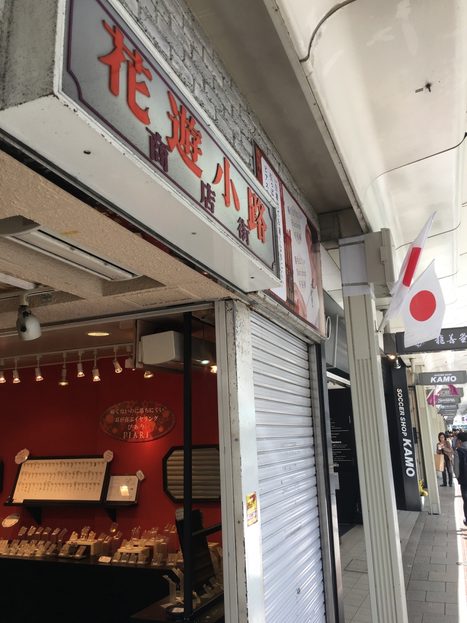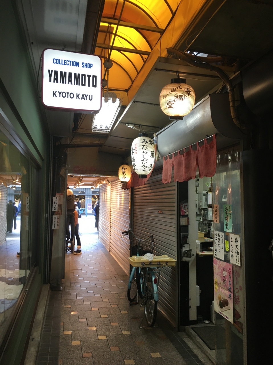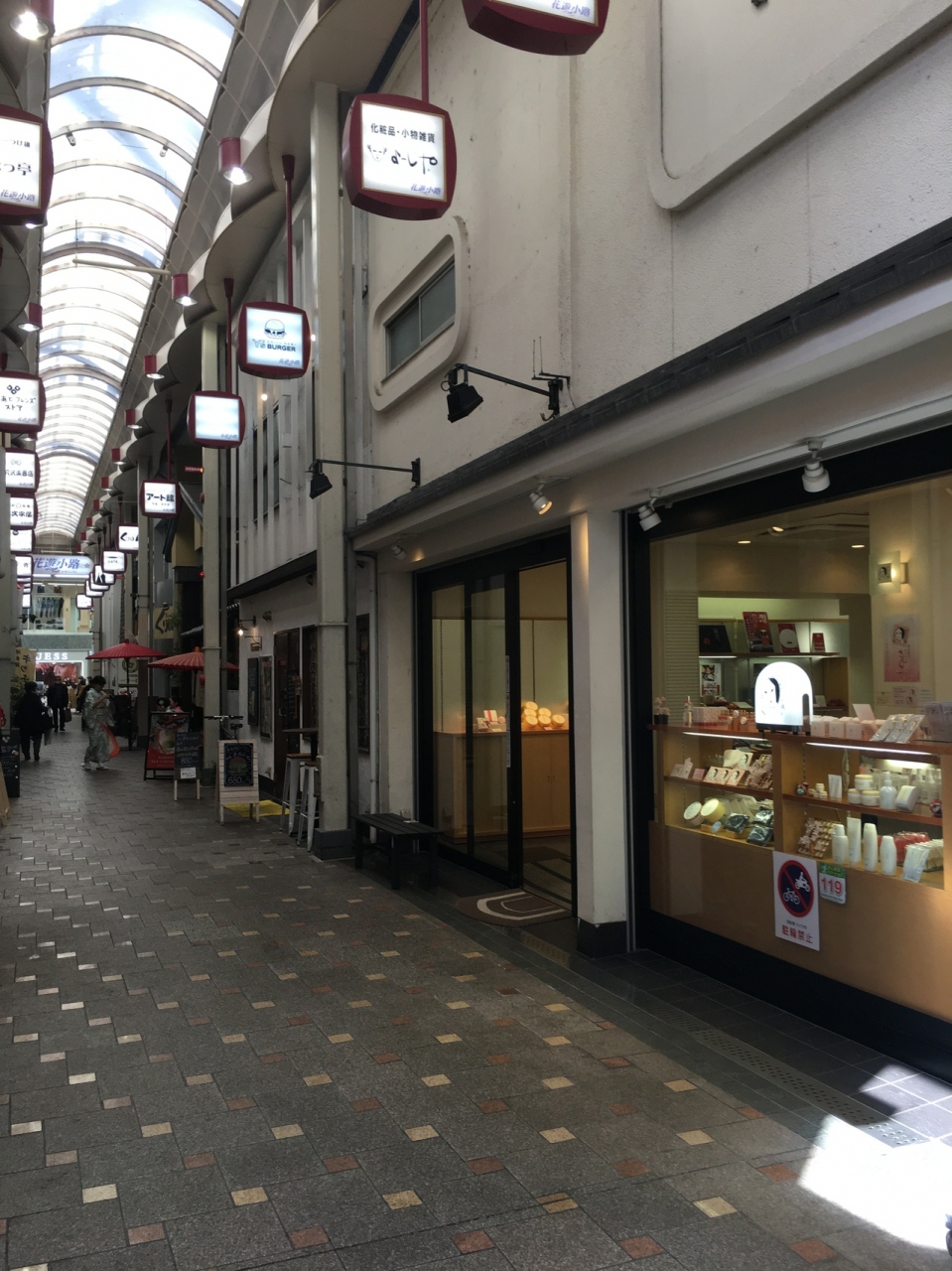 河原町のバス停の前にあったので行って見ました。人が一人すれ違えるほどの幅の道を歩くと3叉路になっていて左側はアーケードになっていて天井が高く、綺麗な店が多く、高級感がありました。飲み屋街かと思ったら普通のショッピングゾーンでした。