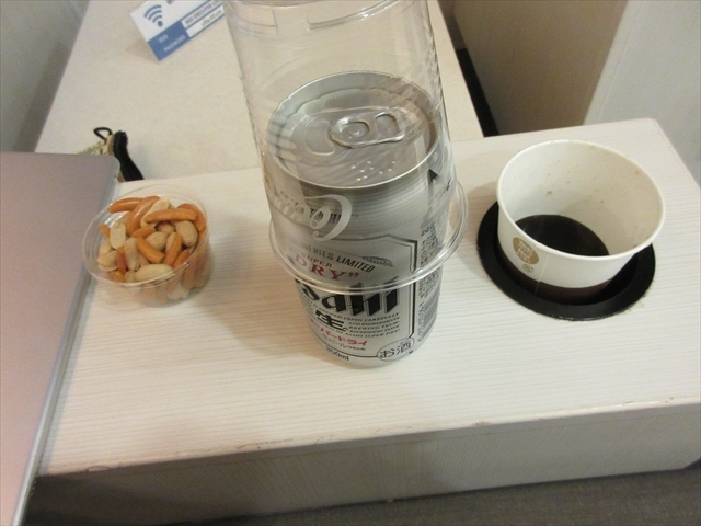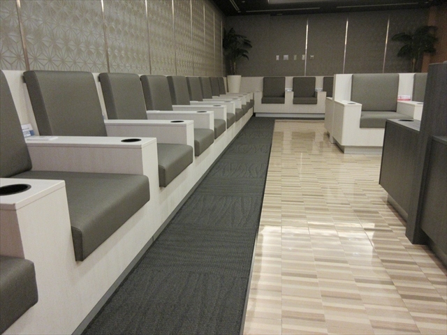 成田空港第一ターミナルにあるカードラウンジです.アルコールは一杯(缶ビールなどです)まで無料です.食べ物は柿の種があるだけで,その他はジュースとコーヒーくらいです.新聞や雑誌は以前はありましたが,今はなくなりました.改装後は基本的に横一列に椅子を配置する方式に変わったので,ちょうど山手線の通勤電車のようになり,余りプライバシーは無くなりました.改善点は全ての椅子にUSBとコンセントが一つずつ付いたことで,これは良かったと思います.保安検査前なので,長い時間滞在出来ないという欠点があります.