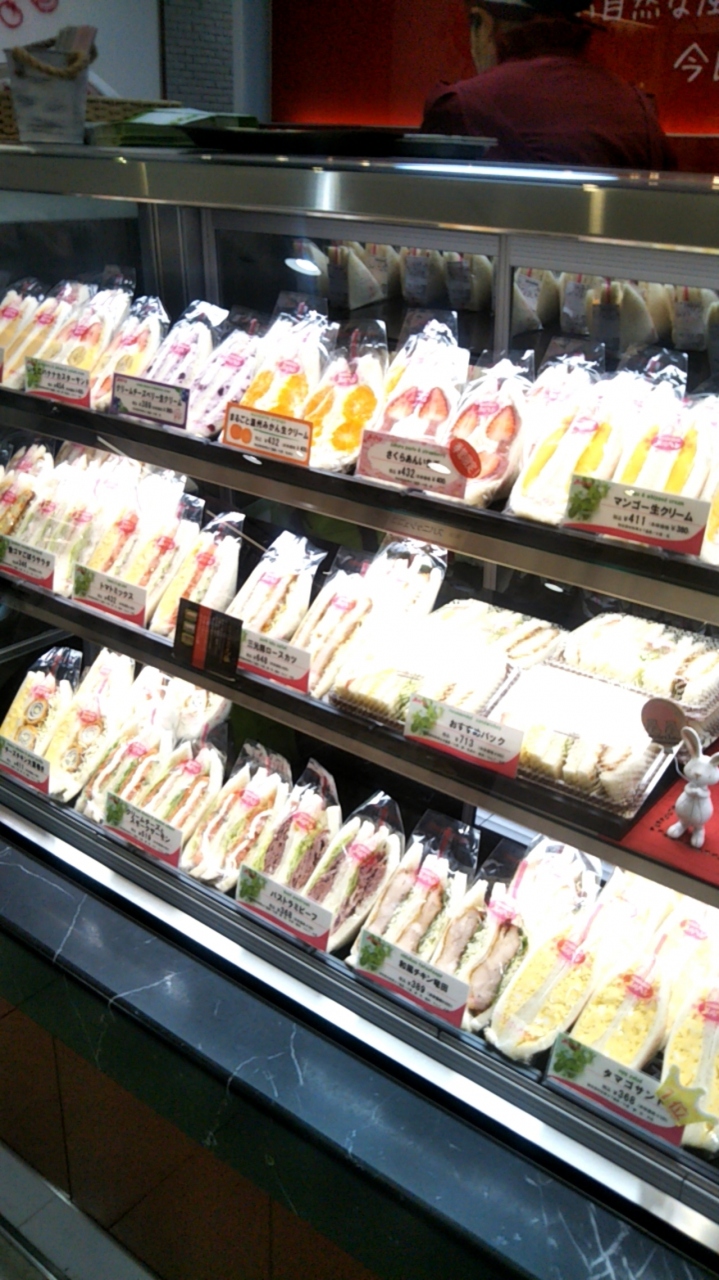 サンドイッチ専門店の「メルヘン」のショーケースには、いろいろな種類のサンドイッチが並んでいます。毎回、どれにしようかと悩むのもちょっと楽しいです。