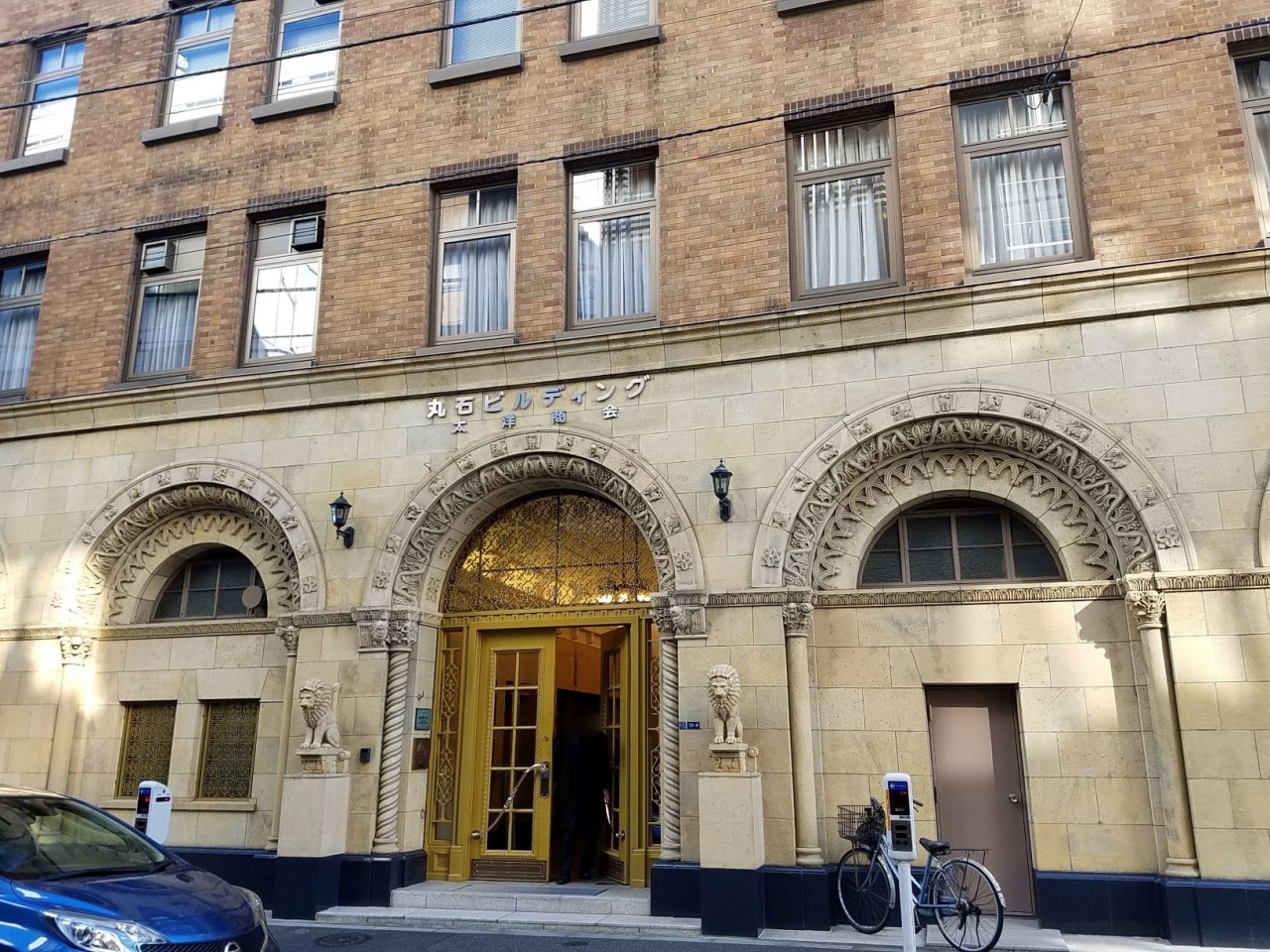 山梨中央銀行東京支店の向かい辺りにあります。1929年に建てられた近世ロマネスク様式の建物で登録有形文化財です。入り口両側のライオン像が何とも良い表情です。建物は1階部分と2階より上では意匠が違うので見上げてじっくりと見たいところですが前の歩道があまり広くないので人通りの邪魔にならないように気を付けてください。