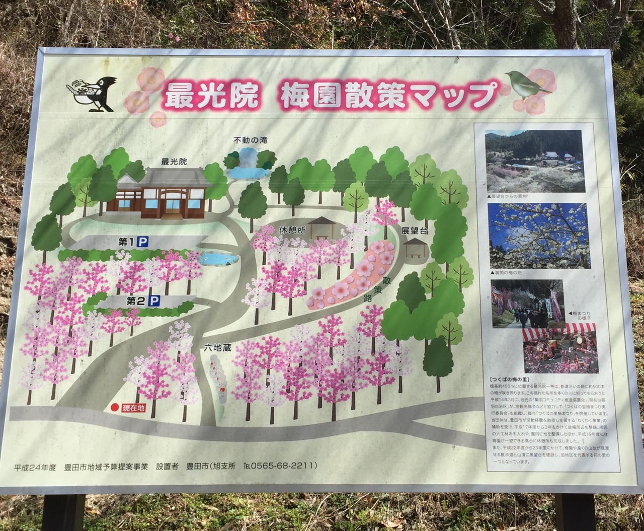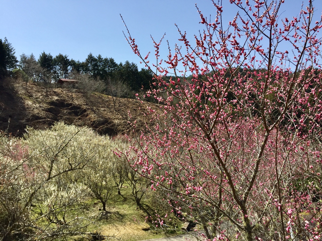 残念ながら、全体的な梅の見頃には早かったようですが、一部は咲いていて、春を感じることはできました。少し歩くと小さな滝もあり、梅園全体を見渡せる「梅見台」と名付けられた展望台もあり、気持ちよく、散策することができました。