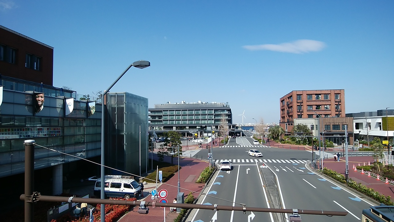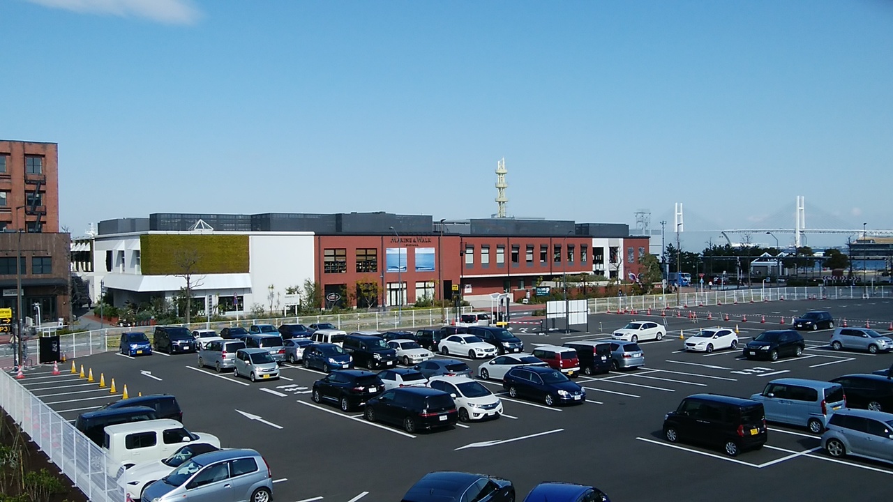 横浜みなとみらいのワールドポーターズ駐車場エレベーターからも上がれる、サークル状の歩道橋です。こちらからは最近のハンマーヘッド・JICA・Marine&Walkや赤レンガ倉庫に遠方にベイブリッジまで見られます。