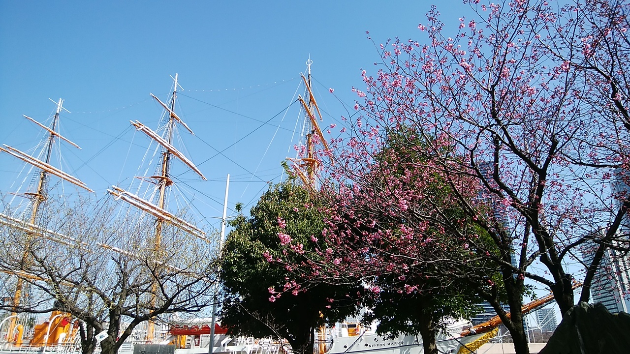 みなとみらい・さくら通りを歩くがソメイヨシノはまだ関花していない。その通り横のコスモワールドも休園中で閑散としている。