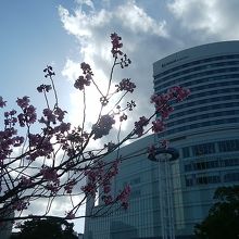 汽車道は横浜市の桜木町駅前と新港地区とを結ぶ、鉄道廃線跡を利用してできた遊歩道です。ワールドポーターズ方面へはこちらが近道となりますが、散策しながらみなとみらいの眺望が楽しめてとても良いです。観光客だけでなく市民の憩いの場でもあり、特にこの春にはソメイヨシノの桜並木が見事で、その下を歩くだけで心が癒やされますよ!