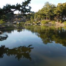 広島県立美術館と繋がっているので、セットでも見学出来るようになっています。中央の池を中心とした回遊式庭園で、四季折々の景色が楽しめる日本庭園でした。起伏に富んだ造りになっていて、足元が悪い場所もありましたが、リラックスできる雰囲気でとても良かったです。ベンチに座って景色を眺めながらゆっくり過ごす事も出来ました。また、ミモザ、河津桜など、春が感じられる花々も楽しめました。