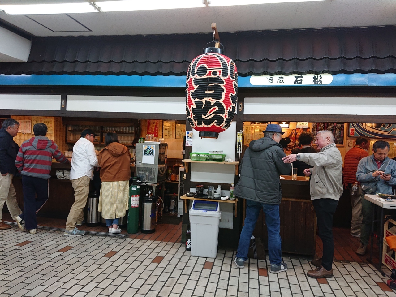 周囲は立ち飲み屋が多いがここ石松 はかなりの古株。今日も昼から呑兵衛が集う。