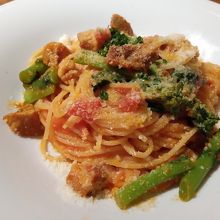 上野駅不忍口すぐにある、さくらテラスにあるレストランです。週末にランチで利用したのですが、予約ができるので花見のシーズンでも並ばずにすみました。チキンが有名ですが、それ以外にもビーフストロガノフやパスタもあります。