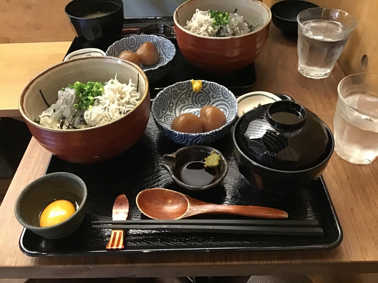 生シラスと釜揚げシラスがセレクトできる丼セットが売りです。