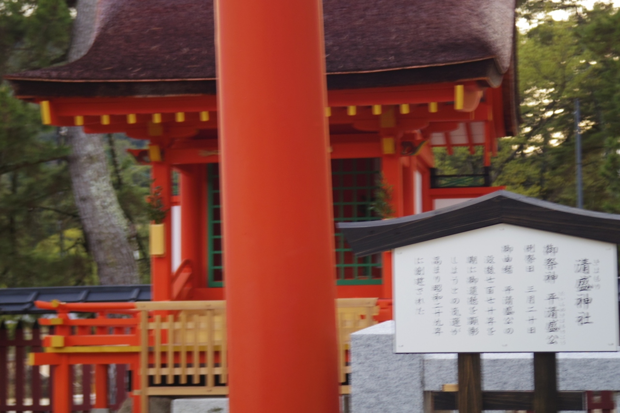 観光客の少ない場所に立つ神社ですがこの辺りからの景色は良いです。清盛神社という名前からしてもっと人気があってよさそうなのですが、昭和に建てられた神社だそうです。建物も小さいのですが、綺麗で新しい感じでした。