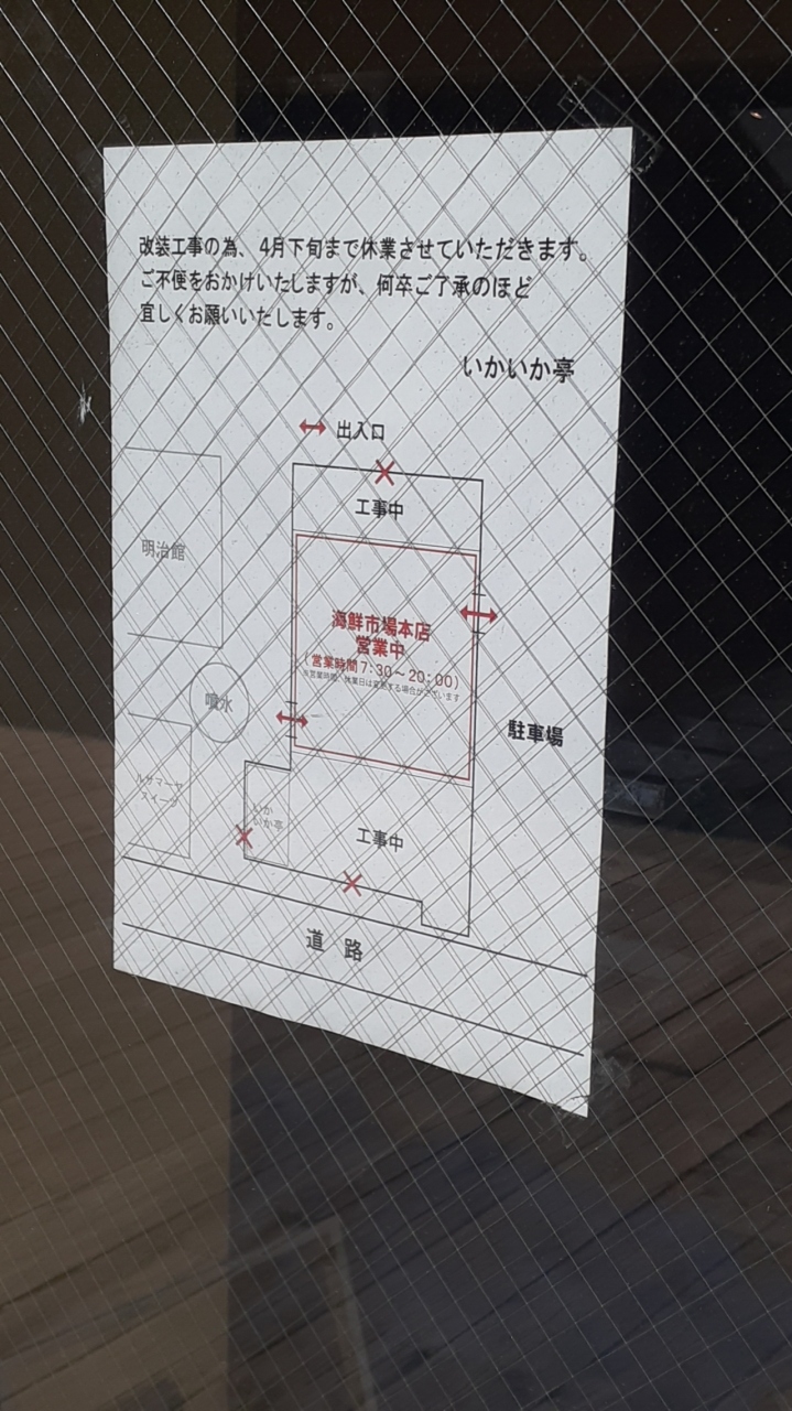 掲示によると2020年4月下旬まで一時的に閉店予定らしいです。