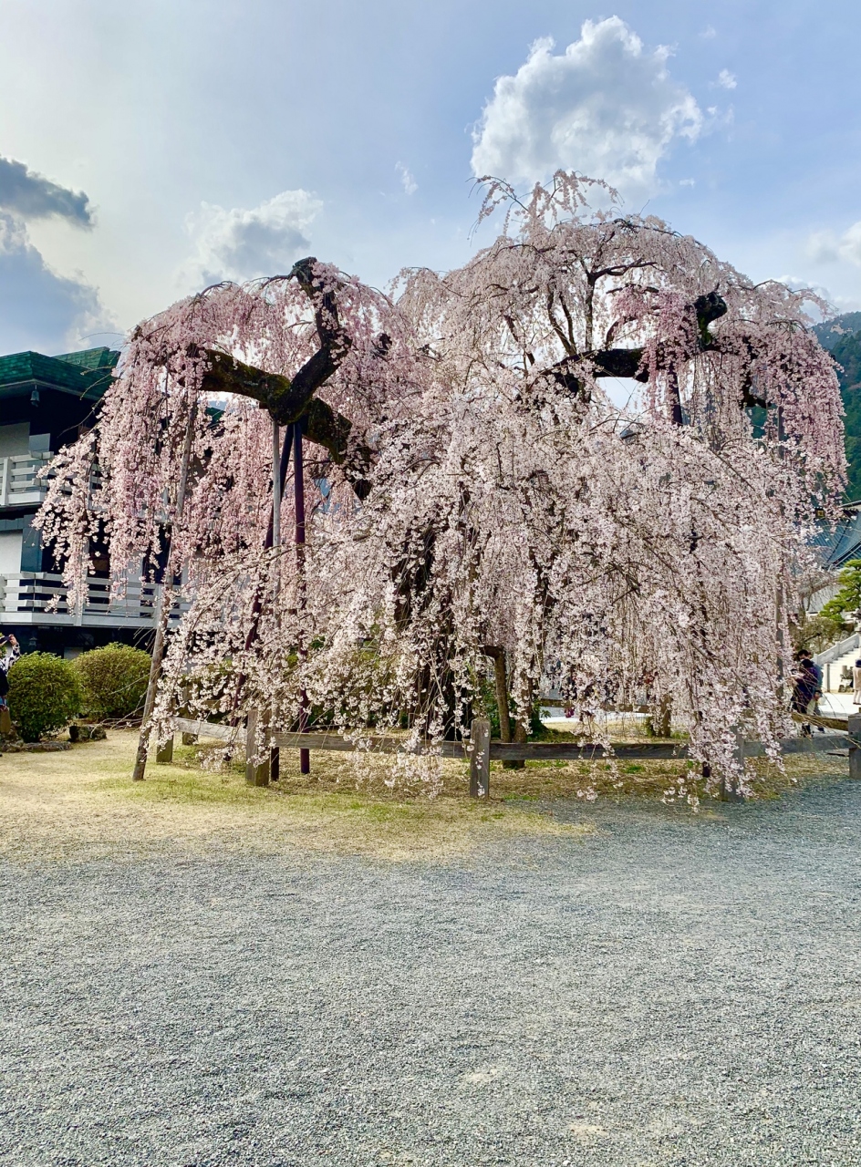 樹齢400年のしだれ桜があります。ちょうど満開でした!とても広いお寺で見どころがたくさんあります。桜の時期で混んでいたようで、駐車場はお寺から徒歩10分くらいの場所に案内されました。その駐車場からお寺までは特に案内がないので場所が分からず困りました。