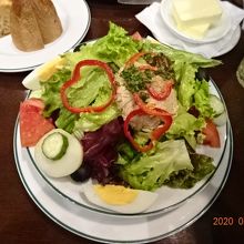 選ぶと、キッシュかサラダしかなく、連れと1つずつ選んだ