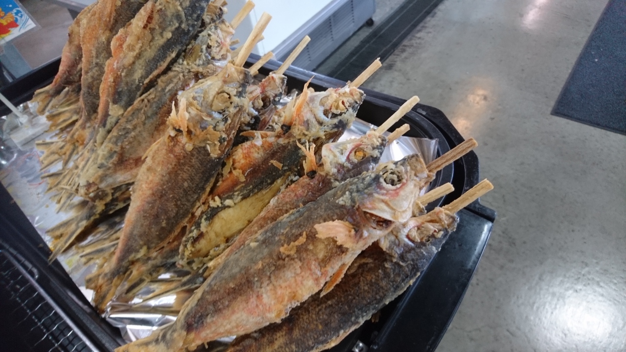 道の駅の向かい、おさかなセンターにあります。ここは、観光客相手のお店で、いろんな魚が串焼きになって味わえます。特に新鮮とかご当地ならではという感じのものはすくなしですが、普通においしいです。値段は、少し高い感じがしました。