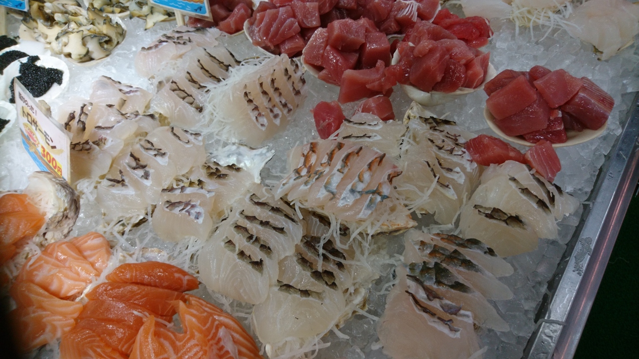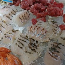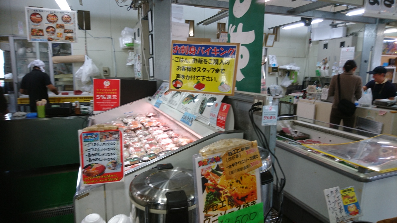道の駅の隣のおさかなセンターにあるお店です。酢飯か普通のご飯を買って、お店で並んでいる刺身をのせて自分好みも丼にしていただきます。以前行った釧路の和商市場の勝手丼のようなスタイルです。刺身は新鮮で量が多いので、一人で買うと2~3種類しか丼にのせられません。じっくり考えて、食べたいものを選ぶのが楽しいです。