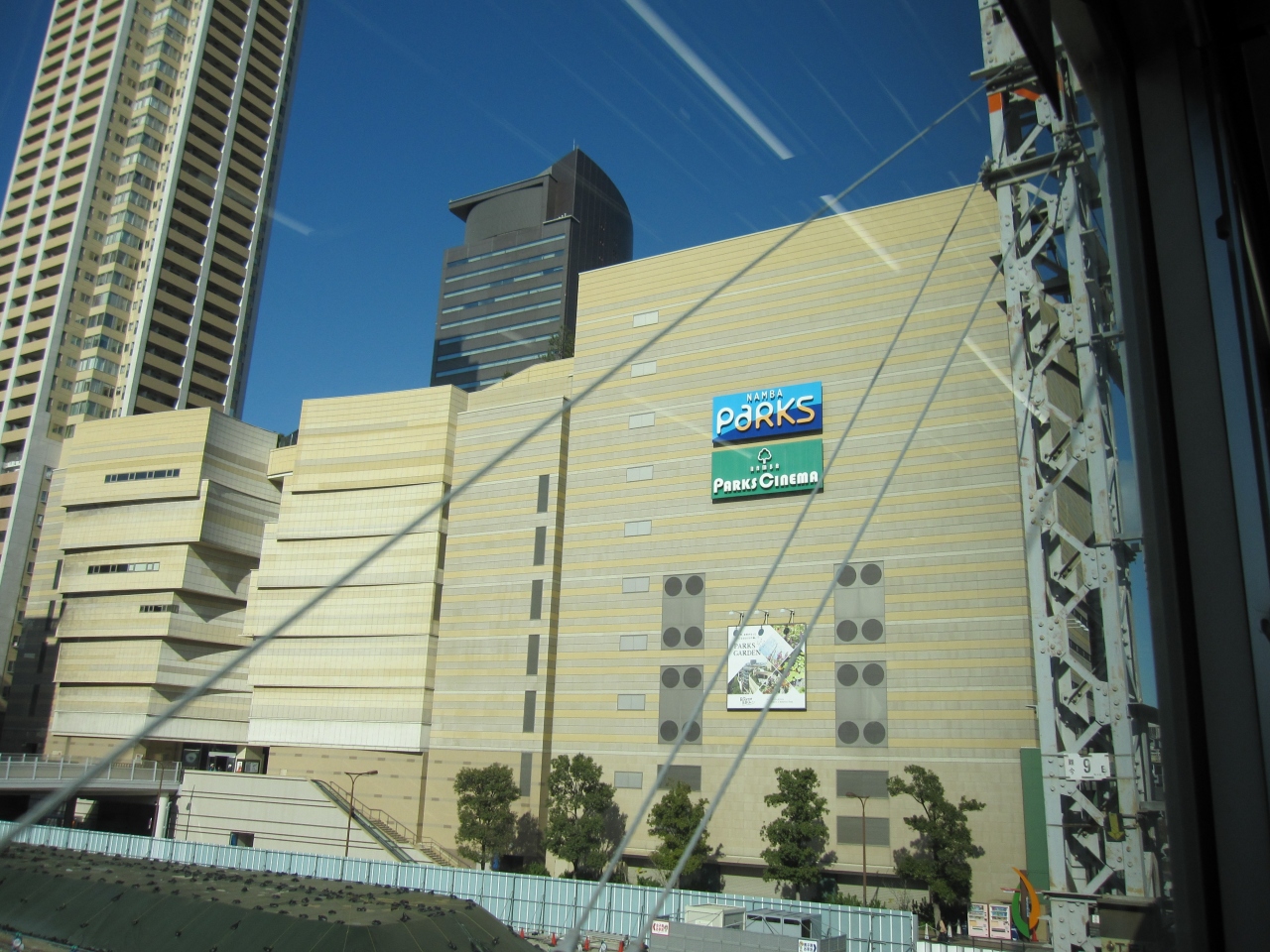 関西空港から、ラピートで、なんば駅に向かう際に、なんば駅に着く手前で車内から見えました。