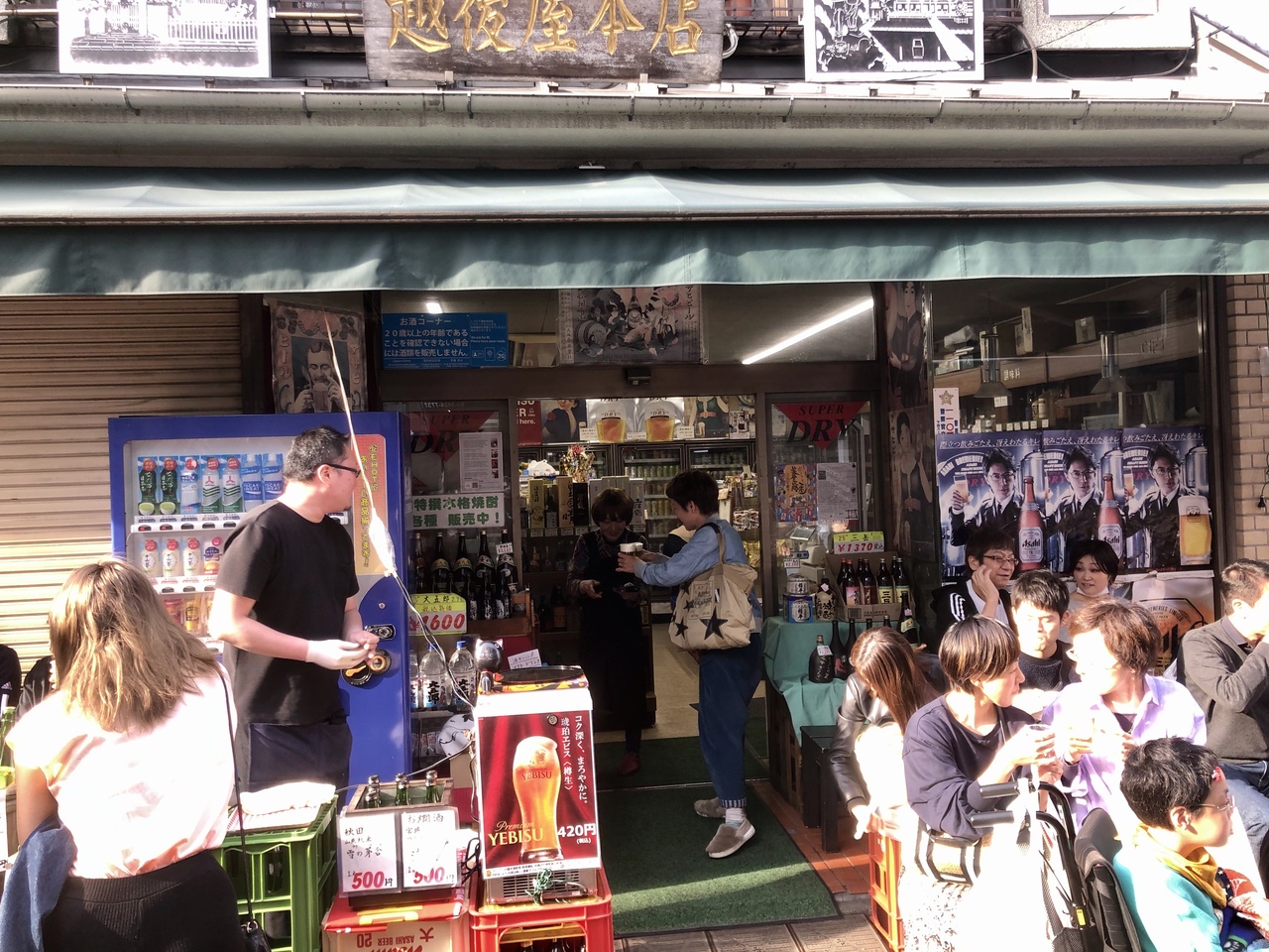 酒店、越後谷本店は店内での角打ちや店先での生ビールや酒の販売で大盛況