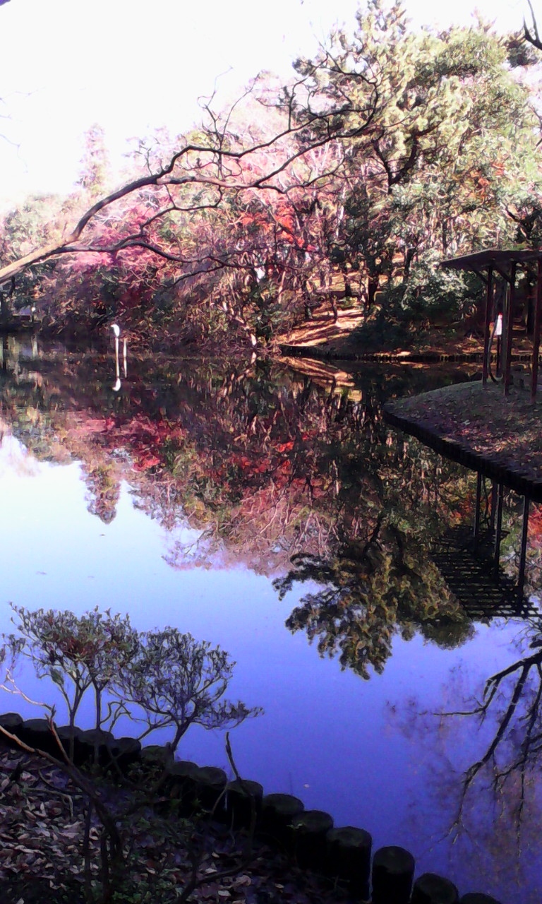 この時は12月ということで紅葉が結構残っていて、園内の池の静かな水面に赤いモミジなどの木々が写る様子を見ながら一息ついたりと穏やかな時間を過ごせてリフレッシュするのに便利でした。