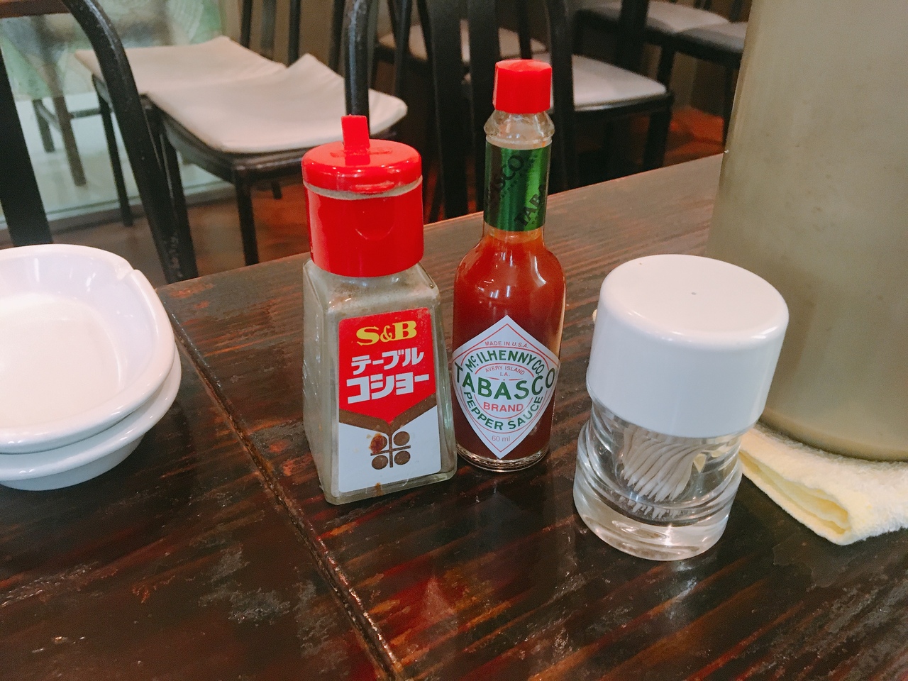 残念なのはテーブルに置いてあるのがタバスコと白胡椒のみ。なぜあんかけスパで白胡椒?ここは大いに謎でスパイス大好き人間には大いに物足りない部分だった。量はそこそこあり学生さんにはいいかなと思う。