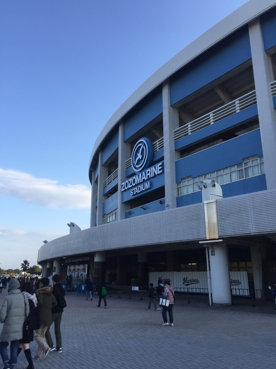 駅からのアクセスですが、JR海浜幕張駅より1kmくらいです。道は一本なので迷いません。試合日はシャトルバスが運行されています。