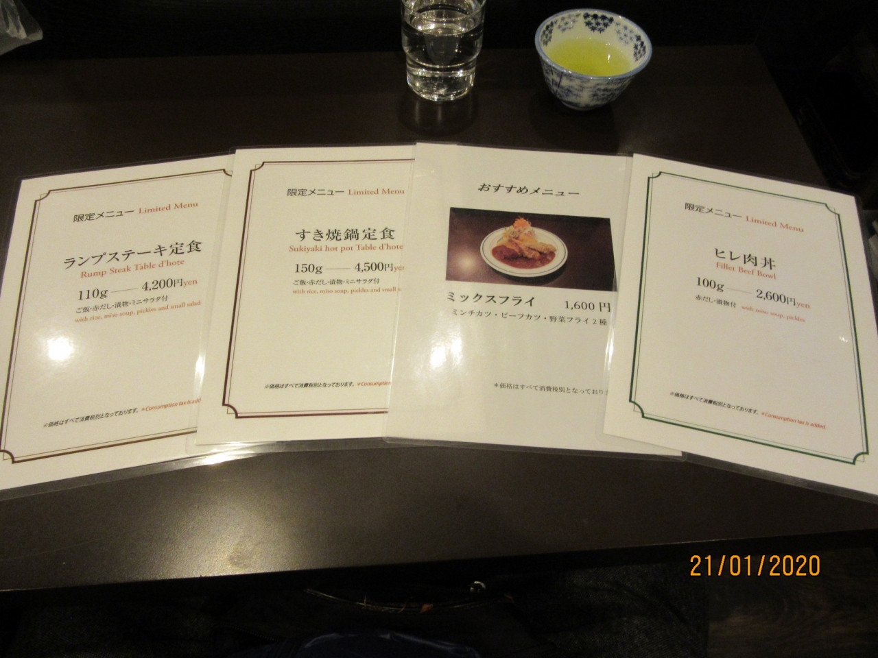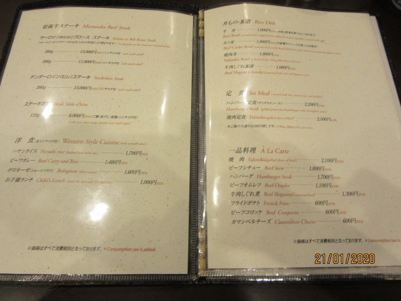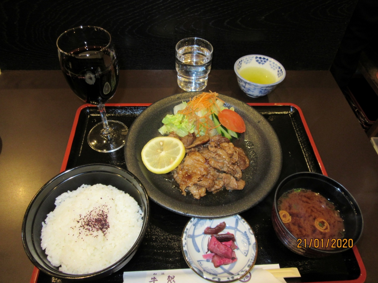 ランチのラストオーダー時間13時30分に間に合わずダメ、止む無くセカンドチョイスの【洋食屋牛銀】へ入店。この店は松阪駅歩約15分、11時~18時45分まで通し営業なので入店出来た。【BSTV 鉄道絶景の旅】でこの店のハンバーグ定食が取り上げられていたが、焼肉定食2,500円と赤ワイン2杯(700円X2=1,400円)を注文。隣の有名店
