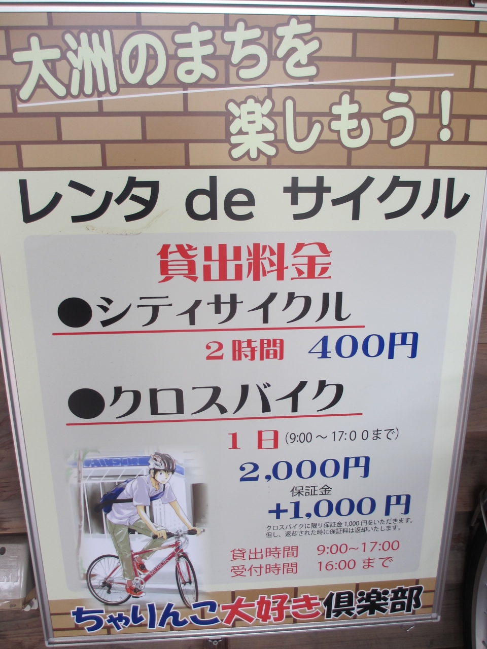 レンタサイクルは2時間400円だった。