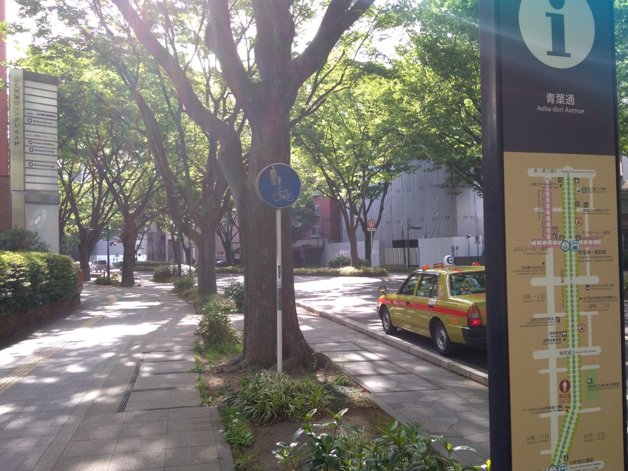 杜の都で有名な仙台ですが、街路樹が整備されている幅の広い大通りが多く、この青葉通りもその一つで、もっとも気に入った大通りの一つです。幅広い歩道は、木陰がたくさんで、5月だったのですが、快適に散策が出来ました。