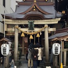 かなり小規模な神社なのですが、たくさんの人が参拝に訪れます。神社があるエリアは週末は閑散としているのですが、神社一角だけ人だかりができており、周囲を歩いている人はだいたい神社へ向かっています。境内は極狭で、道路ぎりぎりに建っているので、週末は神社前にガードマンが立っていて人を誘導しています。