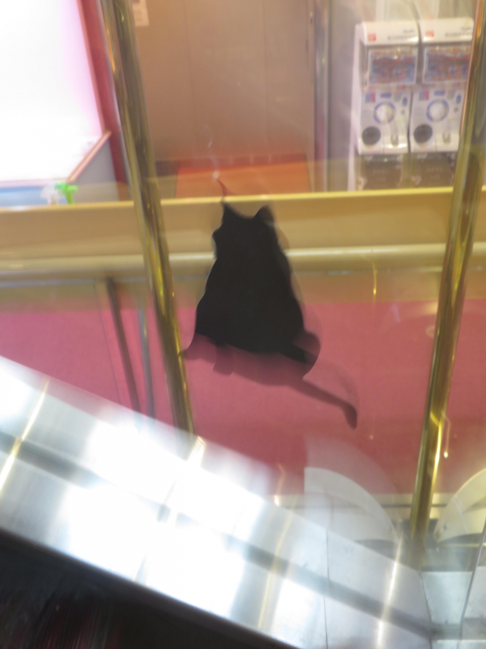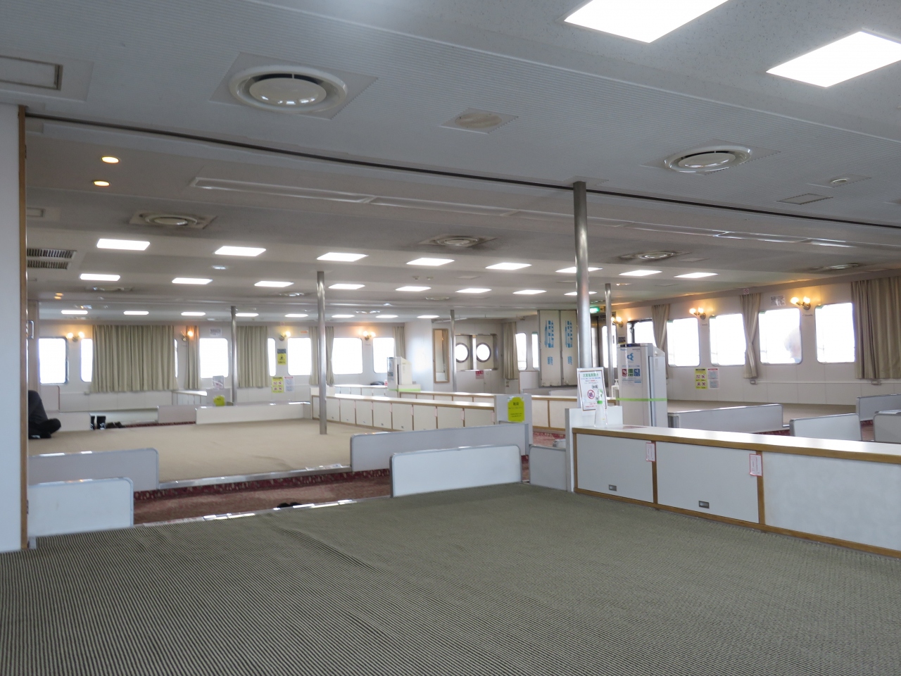 にゃんこフェリーになったのか、乗船口に目が描かれていて、階段にはネコのシルエットのシールが貼られていました。
