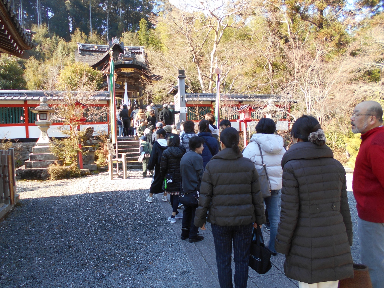 紅葉で有名な鍬山神社です。亀岡市から南の方へ入った所にあります。電車の駅からならかなりの距離になります。バスもたぶん本数は少ないと思います。それでもお正月は初詣でにぎわいます。車で来られる方が多いみたいです。たこ焼きの屋台が一軒出ています。数年前に食べた時はキャベツの入った京都式のたこ焼きでした。今年は食べようと思っていたのですが、忘れてしまいました。