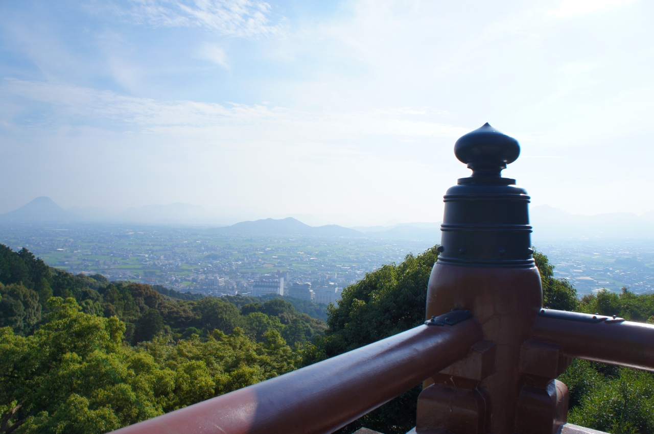 金刀比羅宮の御本宮の近くにある展望台です。本宮にたどり着くまでに785段の長い石段を上っていく必要がある分、かなりの高さまで登ってきているので、展望台からの景色はとてもよかったです。たどり着いたという達成感がありました。