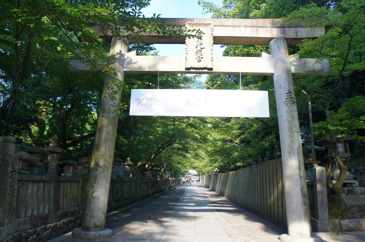 金刀比羅宮の御本宮につながる階段の参道の途中にある鳥居のひとつです。結構大きくて立派な鳥居でした。この鳥居の近くに書院の建物がありました。また、昔主人のかわりにこんぴら参りをしたこんぴら狗の銅像があって、かわいかったです。