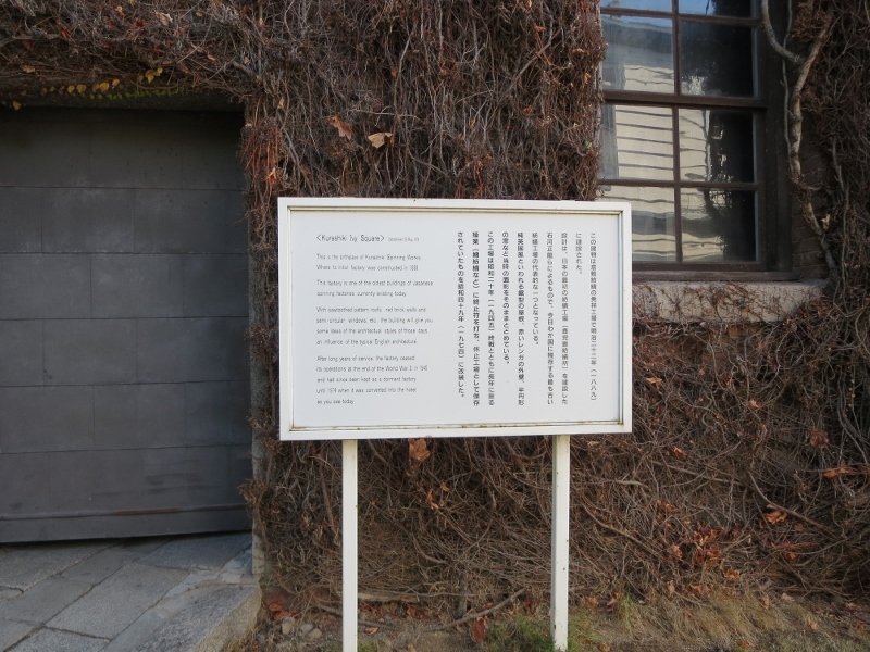 倉敷紡績の工場として建てられた建物ですが、蔦で覆われた洒落た雰囲気で残されています。アイビー学館という名前ですが、コーヒーショップや小物などの店が入っています。敷地全体が蔦の似合うアイビースクエアと呼ばれる場所になっていました。