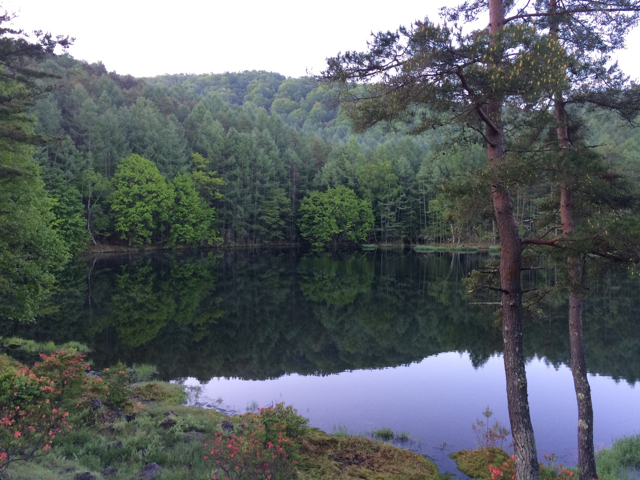 ツマがノルウェーの世界遺産に似ているらしいとネットで見て絶対行きたかった場所です。素敵な光景が広がっていました。初日は小雨で、池に雨が落ちた円が映ったのみ良かったですし、2日目再度早朝に来たら、空気が澄んで透明度があがっていました