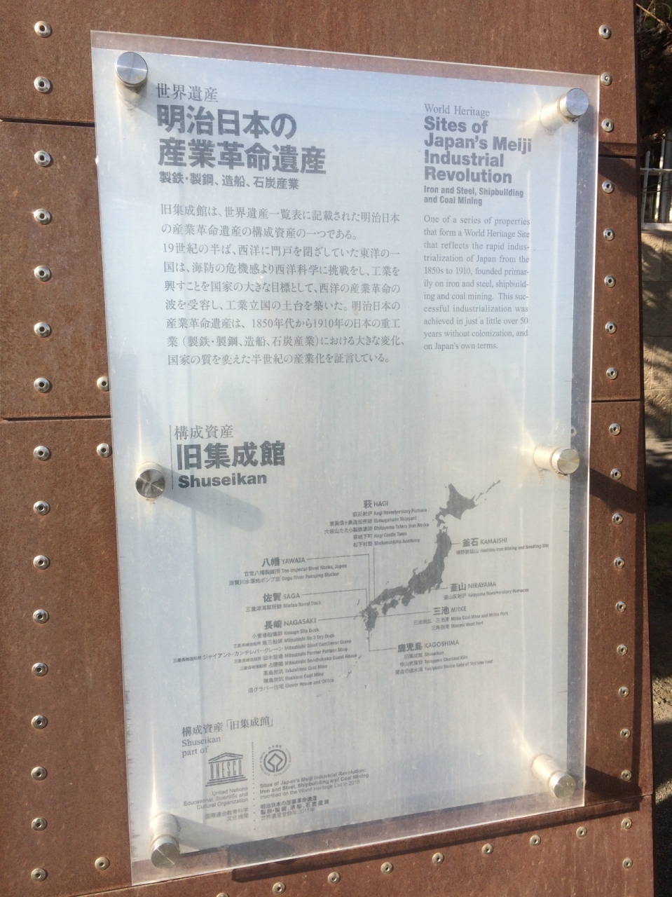 展示物の保存・保護のためか、尚古集成館の内部は少し暗い照明になっていました。写真撮影も禁止でした。国指定、文部省指定の重要文化財でした。入場料は仙巌園とのセット券で1000円でした。パンフレットがチケット代わりで確認されました。