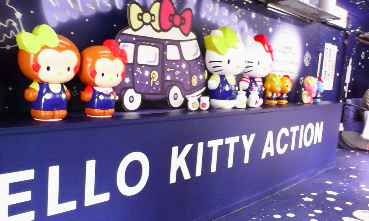 この時はたまたま案内所とキティちゃんとコラボしていたようで、車内にキティちゃんなどサンリオのキャラが並ぶフォトスポットができていたり、入口にさりげなくキティちゃんをイメージしたリボンが付いてたりと楽しげな雰囲気で記念撮影にもってこいでした。