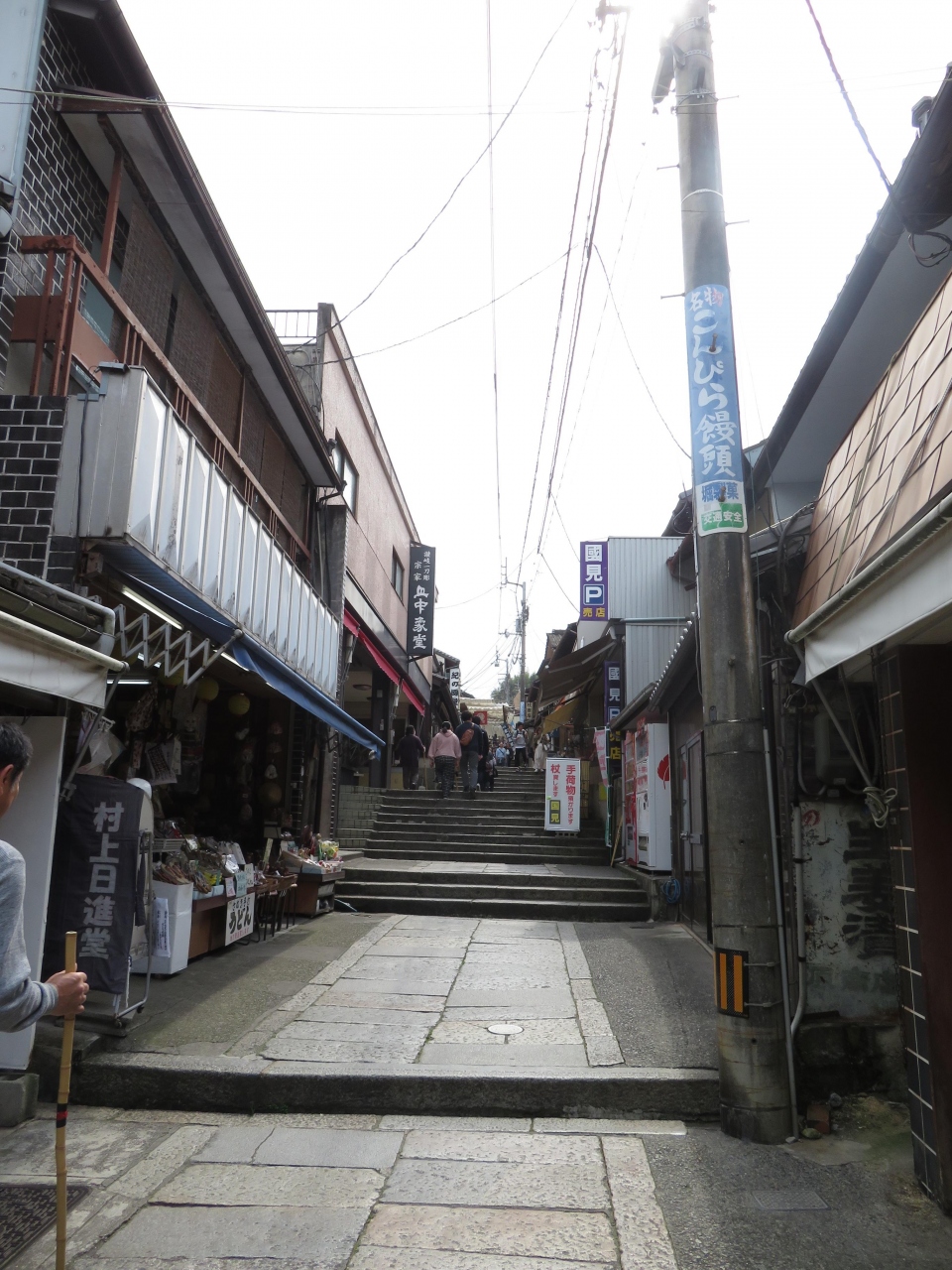 御本宮に向かう参道には、お団子、お煎餅、うどん屋、Tシャツ、小物などの土産物屋がたくさん、上まで行くのが大変ならここらを散策するだけでも楽しいです。