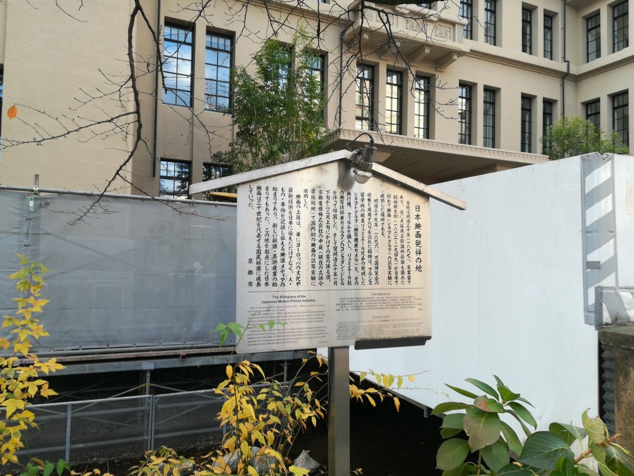 三条と四条の間の木屋町通り沿い、高瀬川側に記念の立て看板のみがありました。日本映画発祥の地というのは国内にいくつかありますが、こちらでは、シネマトグラフという映写装置の試写が国内で初めて行われたところだそうです。