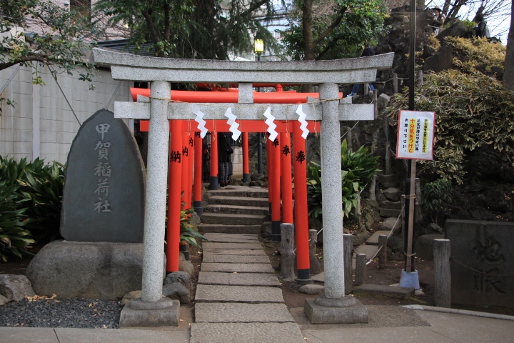千駄ヶ谷界隈を散策した際、鳩森八幡神社境内にある甲賀稲荷神社にも参拝しました。
