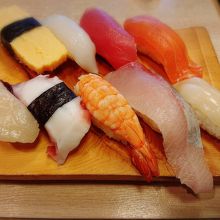ホテル玉泉のすぐ目の前にあるお寿司屋さんで地元の魚介類などをお寿司の盛り合わせに使っているので新鮮な美味しいお寿司を楽しむことができました お店の人達の対応も大変丁寧で美味しい夕食の時間を楽しむことができてよかったです ホテルの方にオススメして頂いて訪問して良かったです