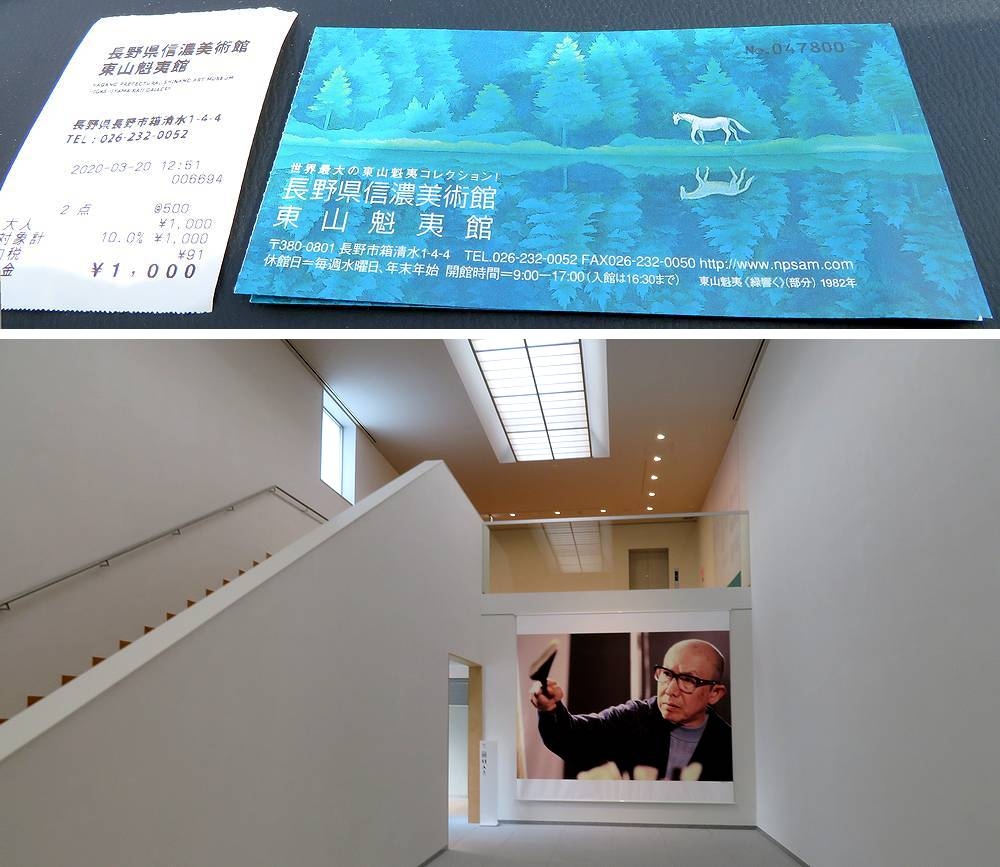 友人の勧めでスキーと墓参りついでに、2020年3月のお彼岸の日に訪れました。コロナ騒ぎで観光客の激減のためか見学客が少なく、ゆっくり見て回ることができました。料金は大人一律500円でした。建物は美術館や博物館の設計で有名な谷口吉生氏により2019年10月にリニューアルオープンされました。モダンは建物の2階にある作品展示室は撮影禁止で、魁夷の若いころから晩年までの作品が展示されていました。残念ながらリニューアルオープン記念展では展示されていた、魁夷の代表作緑響くは見れませんでしたが、十分堪能できました。建物もすばらしいので、機会があったら、訪れてみてください。なお、信濃美術館はこの時は改装中で、駐車場は使用できず、近くの善光寺北にある第三駐車場(有料)を使いました。