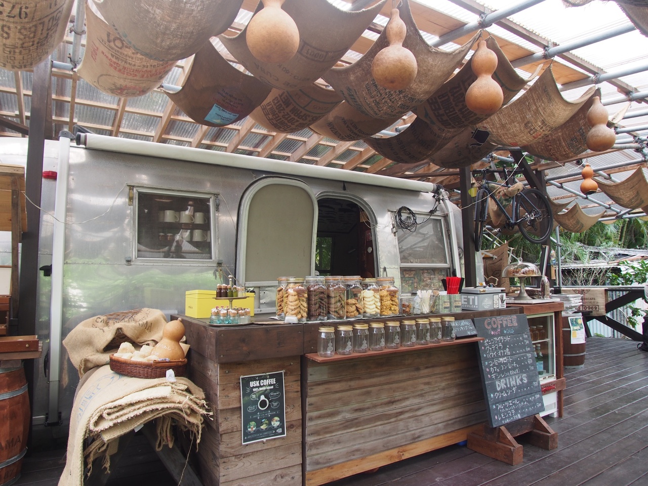 宇宙船みたいな海外で走っているような車を使ってカフェにしています。