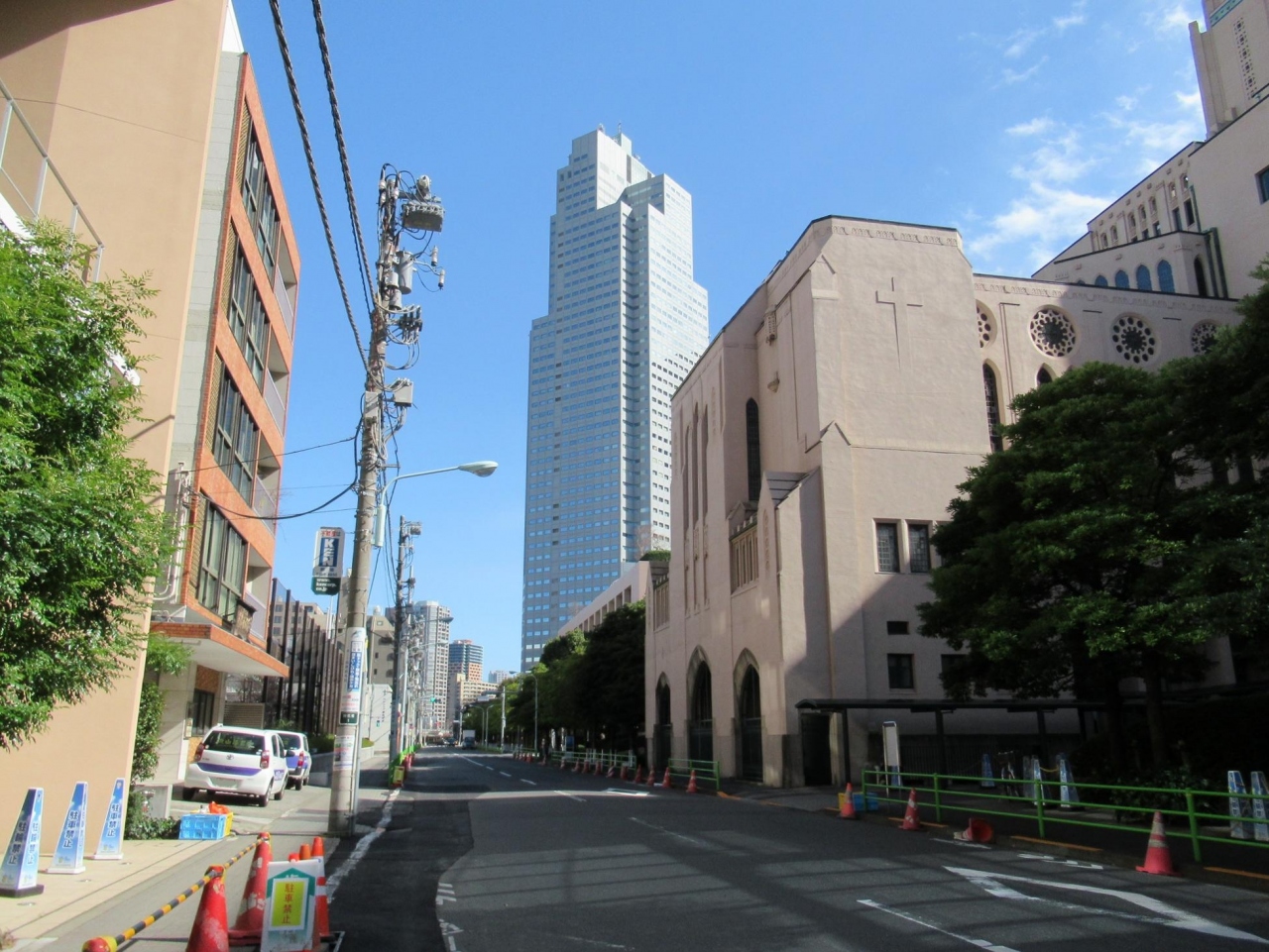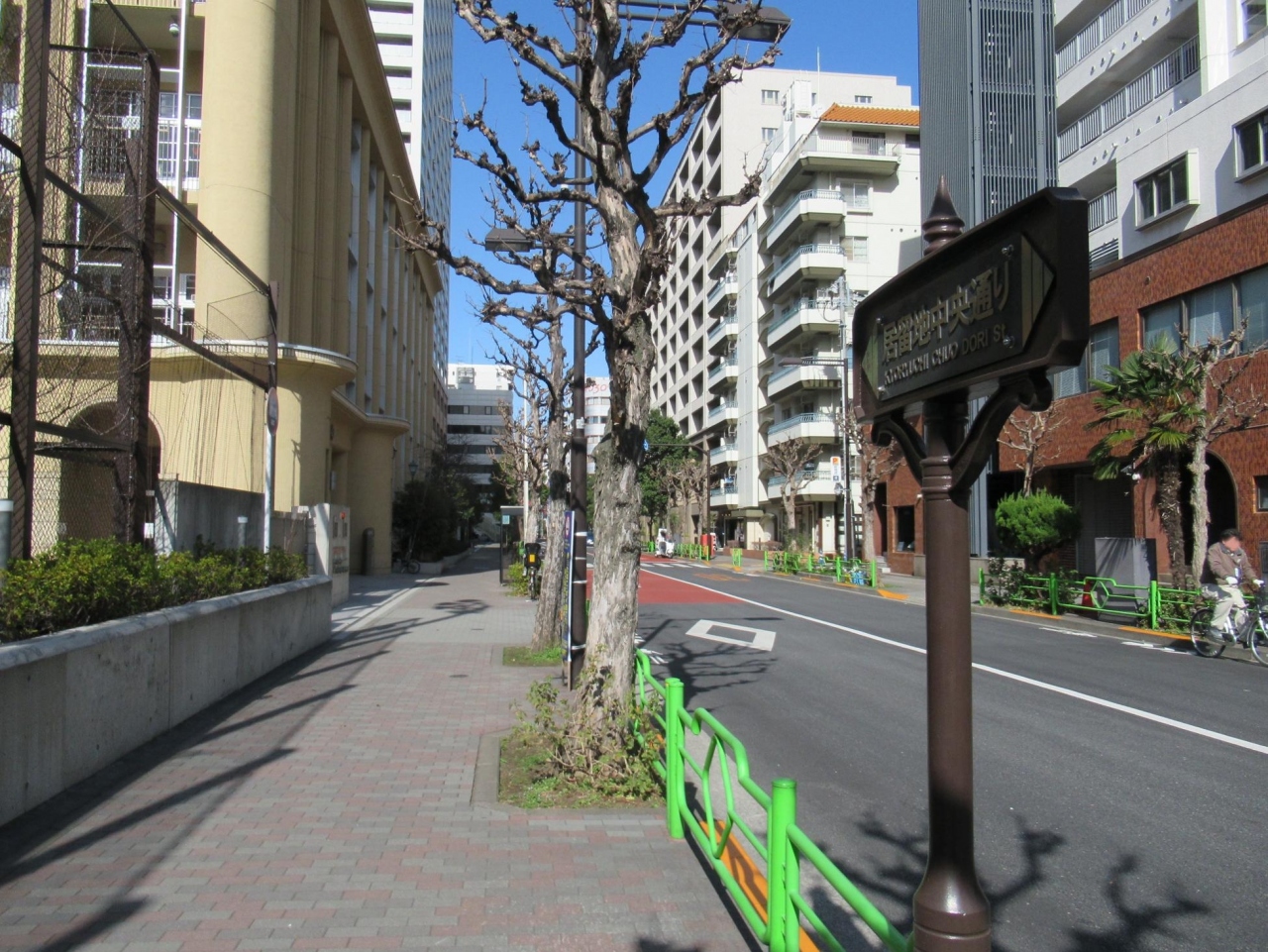 この通りは、築地外国人居留地だった明石町の中央をほぼ東西に走っているが見るものが殆どないので、居留地だった頃からある教会やミッション系の学校関連の記念碑などを見るのなら、途中で交差しほぼ南北に走る居留地中央通りがお勧めです。
