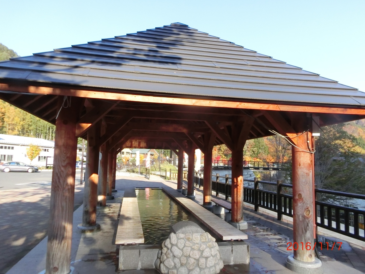 大きな水車があり施設のシンボルのように目立っています。施設は食堂、日帰温泉、足湯が有ります。足湯は無料です。景色を見ながらゆっくりできます。
