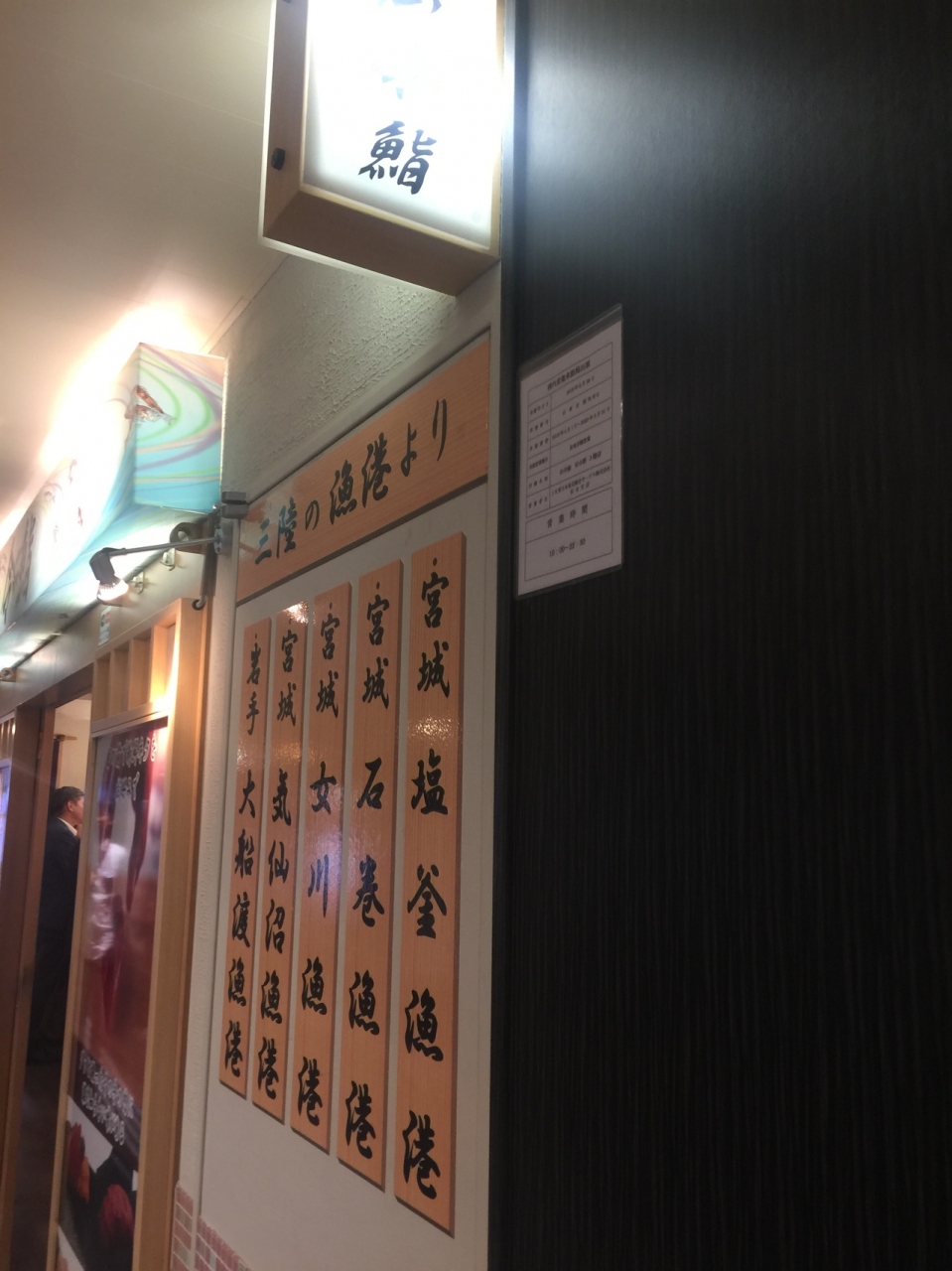 JR仙台駅のすし屋通り(?)にある立ち食いの鮨屋。行列ができていることの多い店だが、平日の19時過ぎにもかかわらず入店できた。ただ、入店後すぐに来店客が相次ぎ、満席になってしまったが。地元産や東北産のネタを選んでバンバン発注していたら、ノンアルコールで4,400円になってしまった。