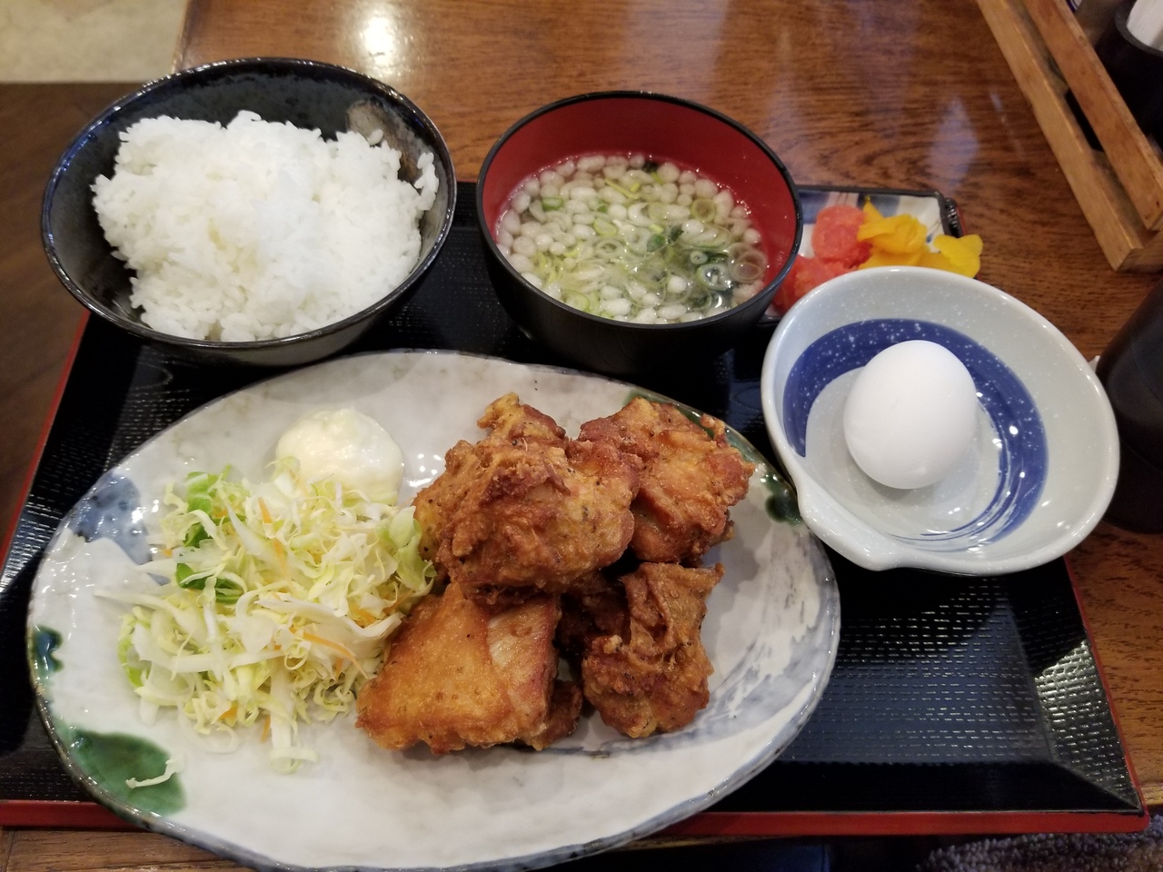 ご飯や味噌汁、漬け物や卵等をチョイスする。