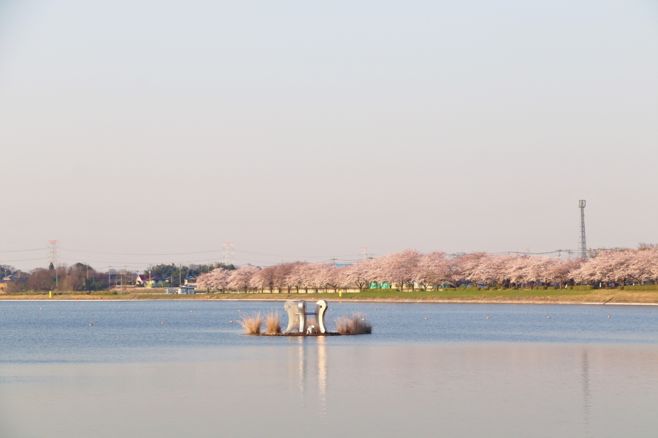 大きな湖の周囲には桜が植えられ、満開となる頃には湖の周囲が桜色に染まります。