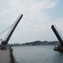 門司港レトロ地区にある歩行者専用の橋です。跳ね橋になっていて、今でも現役で船がくると二つにわかれて上がっていました。跳ね橋として機能する時間は、橋の近くに掲示されていたので、その時間まで待っているとみられます。